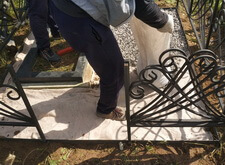 В данном случае мы приступили к работе на уже существующей могиле, на который были памятник с цветником и оградка. Клиенту мешала трава на участке, поэтому было принято решение отсыпать территорию каменной крошкой.